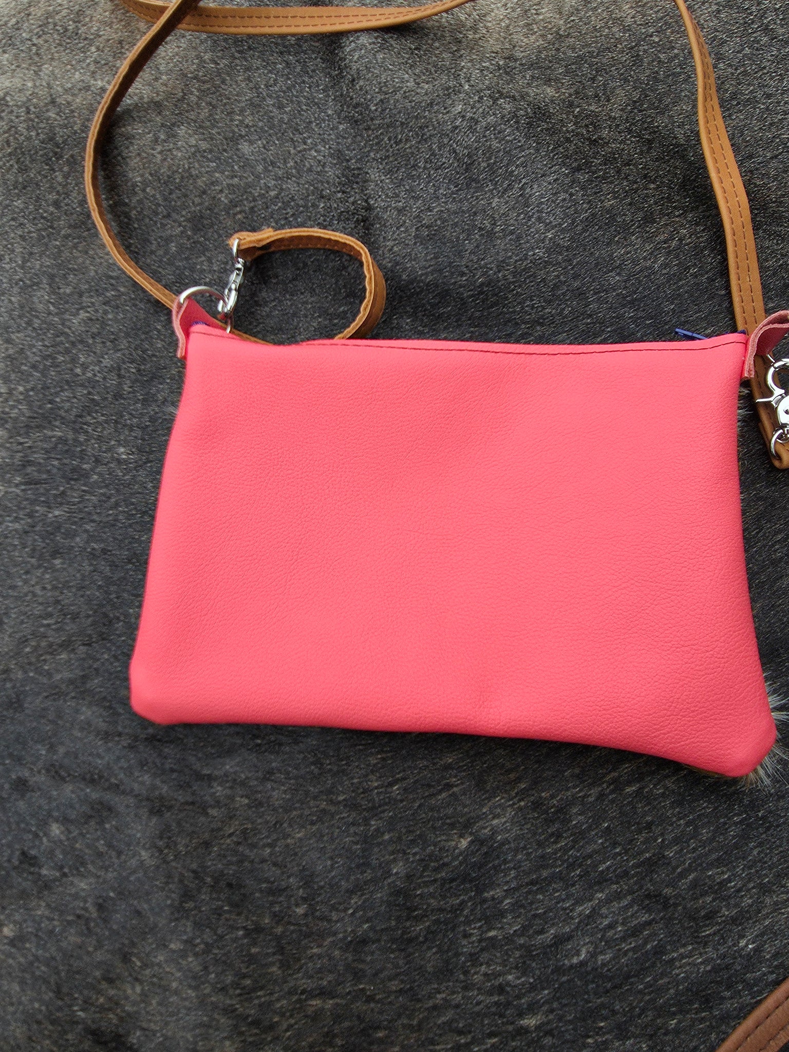 Hand cut and sewn, these authentic real leather crossbody bags are one of a kind. Each one is different in its own way to help you stand out in a crowd. Small and compact, it's perfect for running errands or heading out for dinner and drinks. Interior is left unlined to keep the bag lightweight. Zipper closure. Features a hand tooled and painted leather patch.